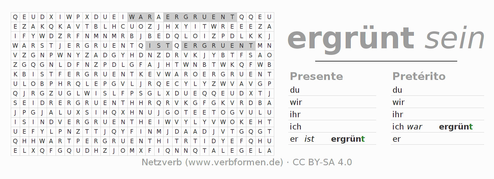 Solução do caça-palavras para a conjugação do verbo ergrünen