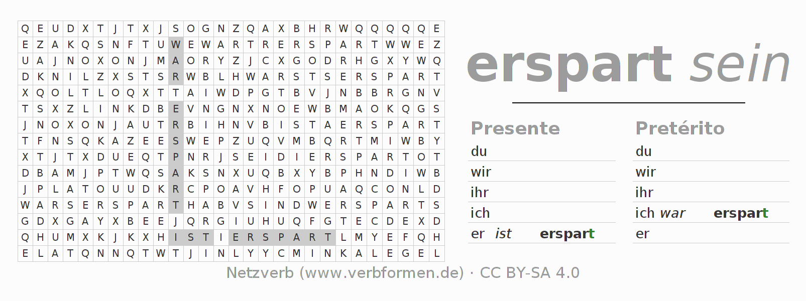 Caça-palavras com a conjugação do verbo ersparen 〈Estado passivo〉