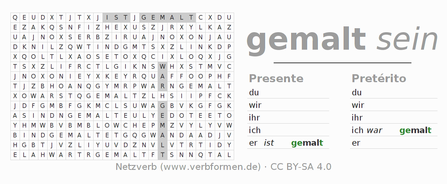 Solução do caça-palavras para a conjugação do verbo sich malen