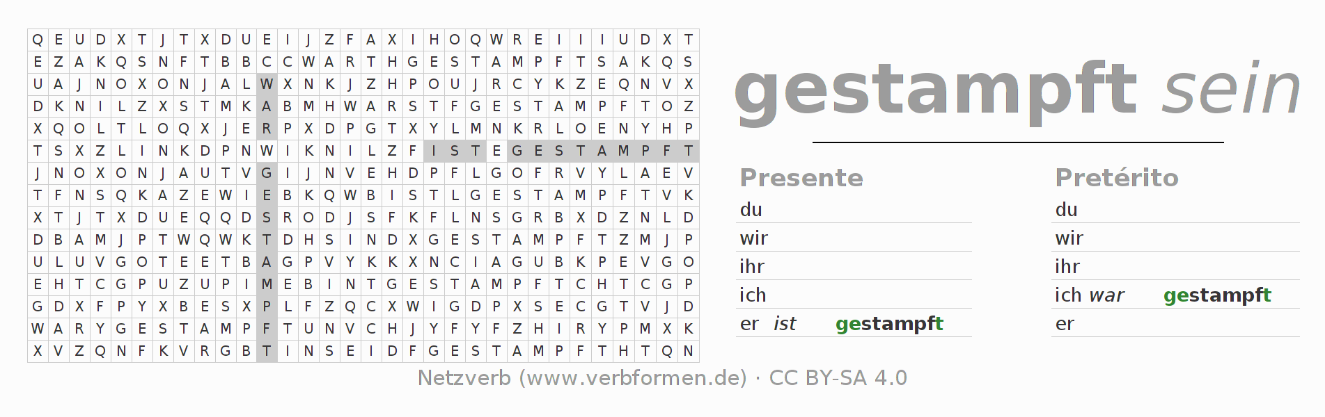 Solução do caça-palavras para a conjugação do verbo stampfen (ist)