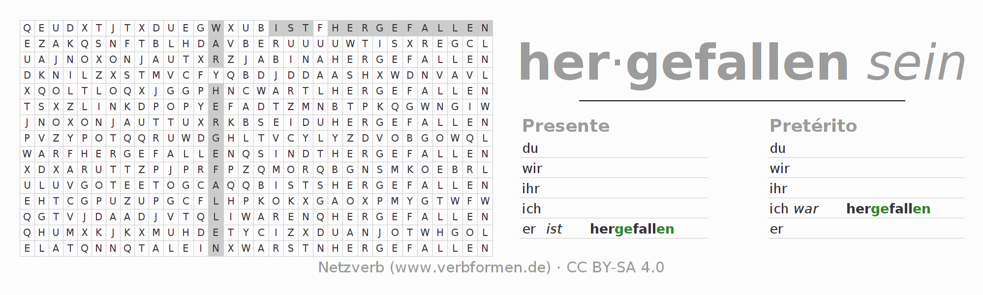 Solução do caça-palavras para a conjugação do verbo herfallen