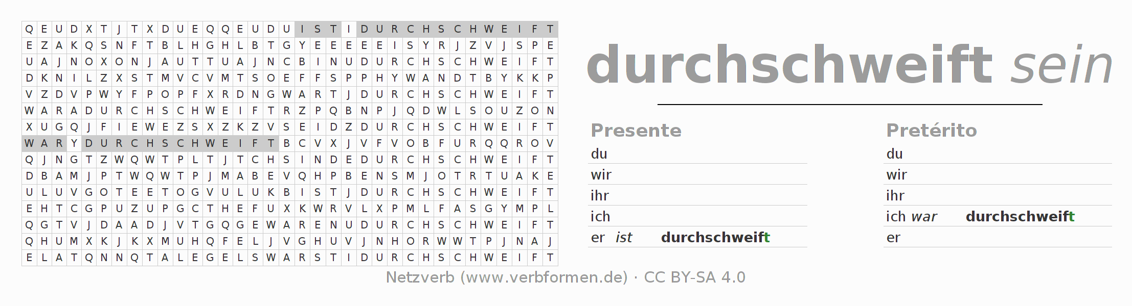 Solução do caça-palavras para a conjugação do verbo durchschweifen