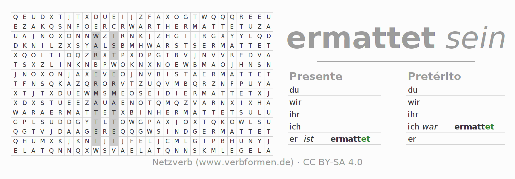 Solução do caça-palavras para a conjugação do verbo ermatten (hat)