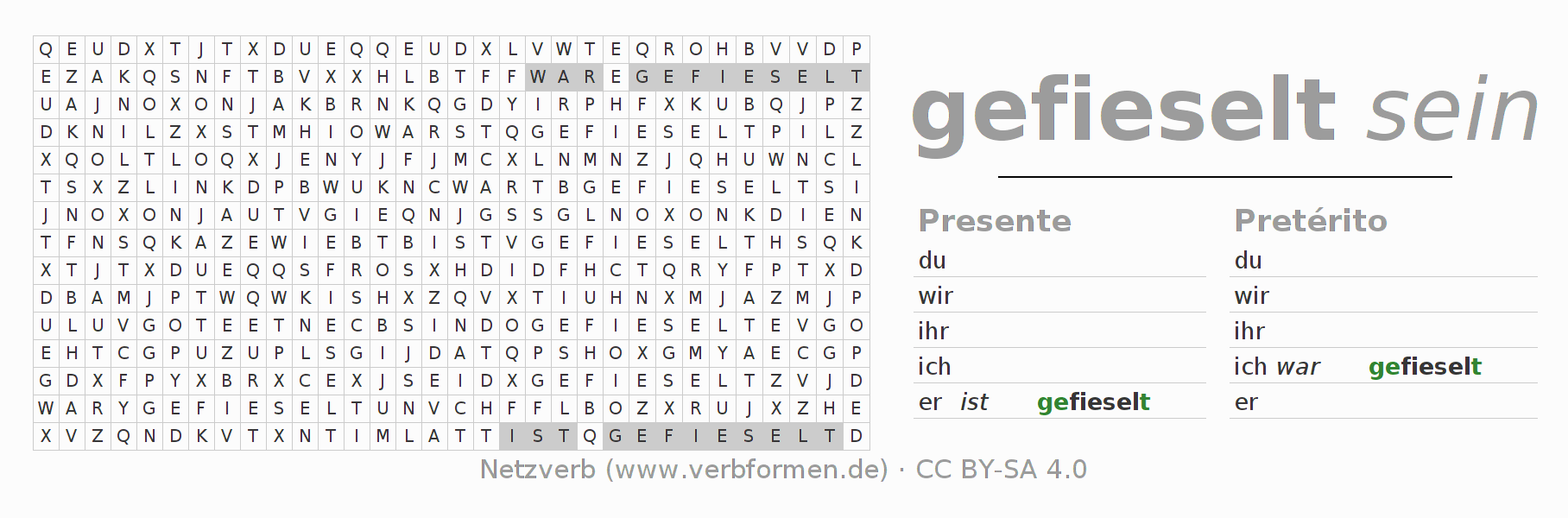 Solução do caça-palavras para a conjugação do verbo fieseln