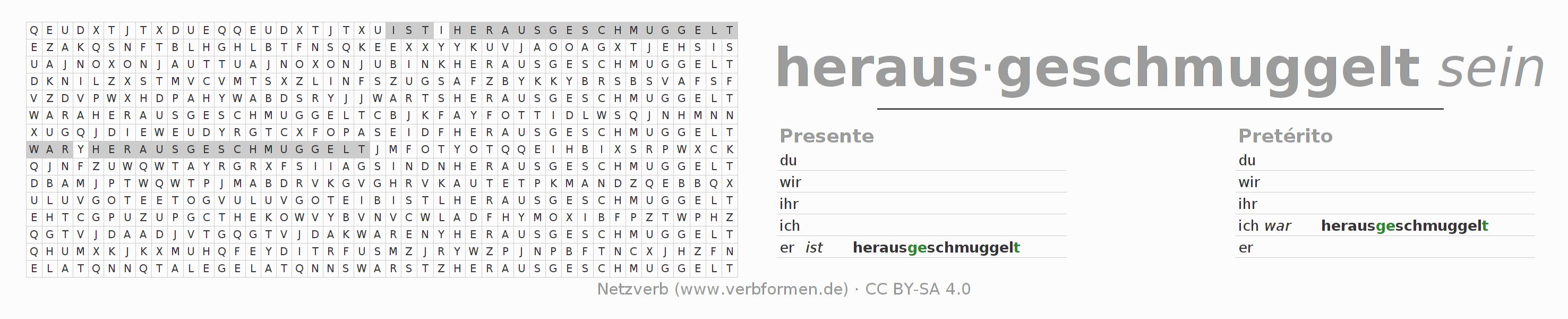 Solução do caça-palavras para a conjugação do verbo herausschmuggeln