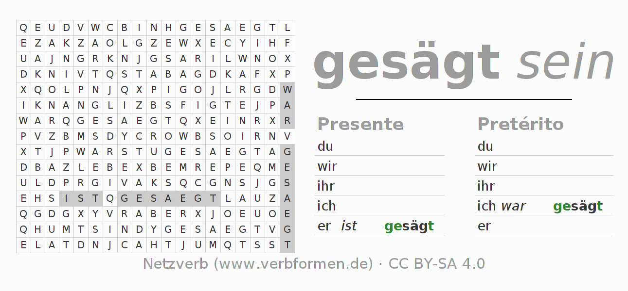 Caça-palavras com a conjugação do verbo sägen 〈Estado passivo〉