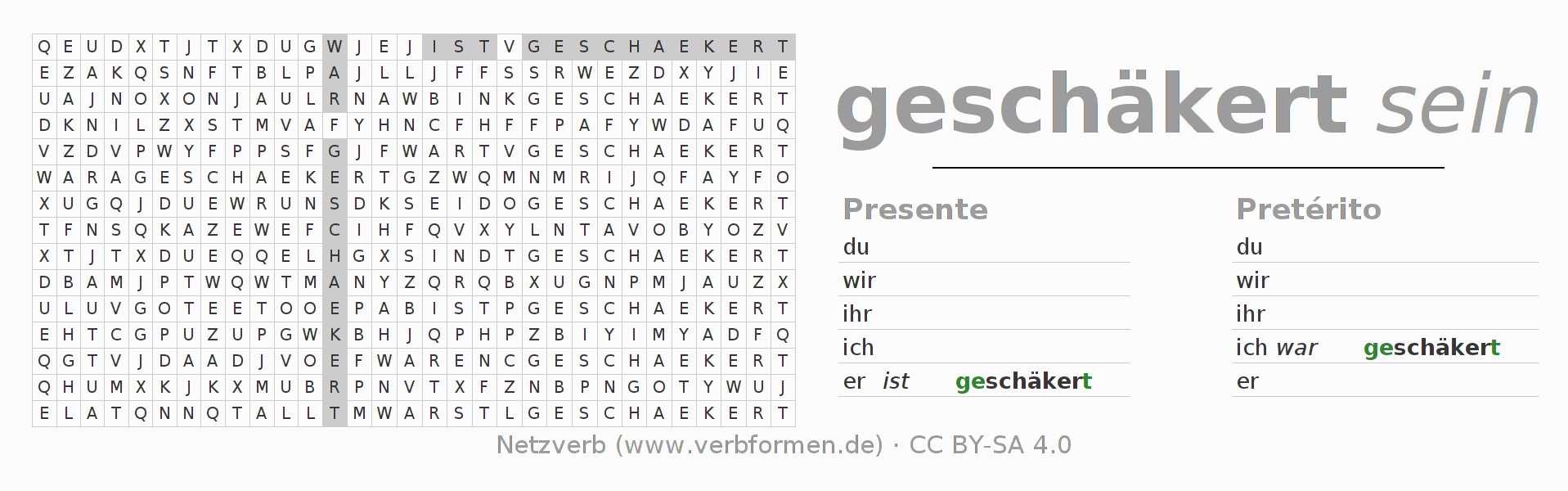 Caça-palavras com a conjugação do verbo schäkern 〈Estado passivo〉