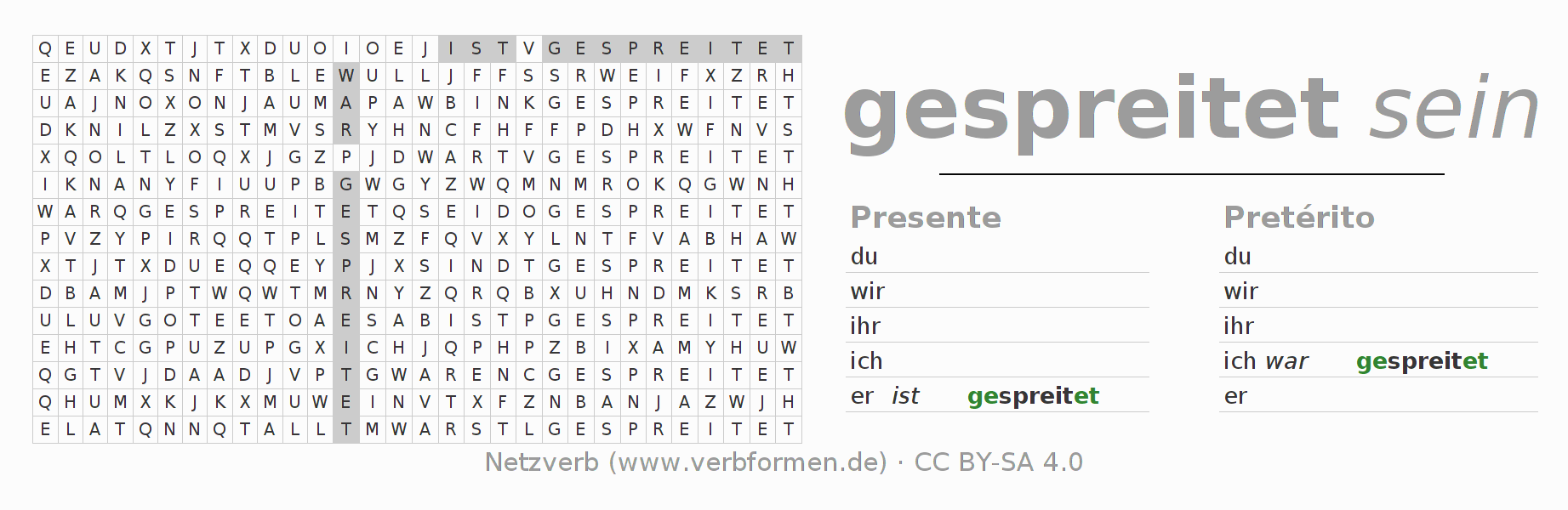 Solução do caça-palavras para a conjugação do verbo spreiten
