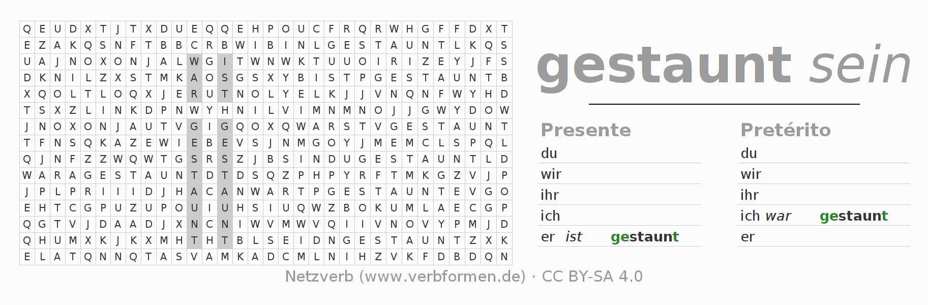Caça-palavras com a conjugação do verbo staunen 〈Estado passivo〉