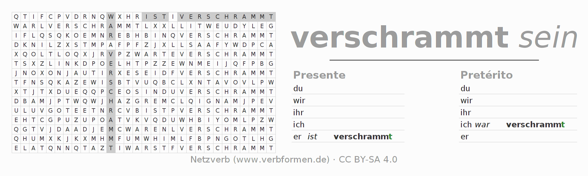 Caça-palavras com a conjugação do verbo verschrammen (hat) 〈Estado passivo〉