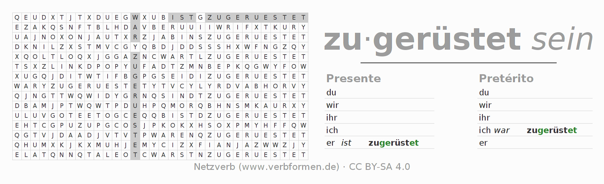 Solução do caça-palavras para a conjugação do verbo zurüsten