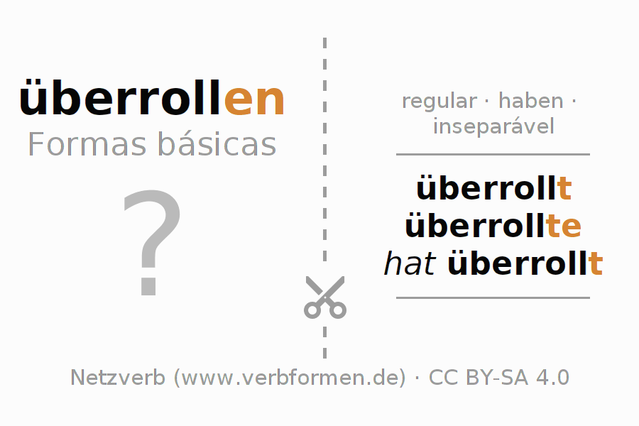 A Tabela de verbo resume todas as formas verbais do verbo überrollen em uma só tabela.