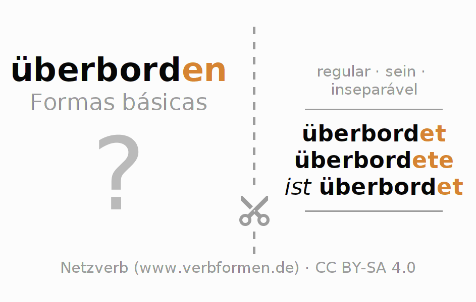 A Tabela de verbo resume todas as formas verbais do verbo überborden em uma só tabela.