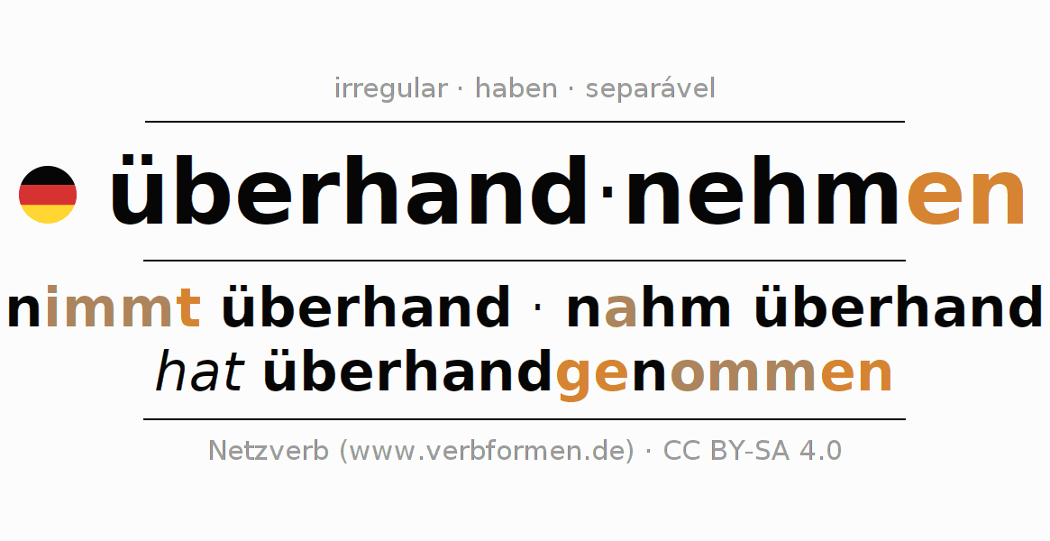 A Tabela de verbo resume todas as formas verbais do verbo überhandnehmen em uma só tabela.