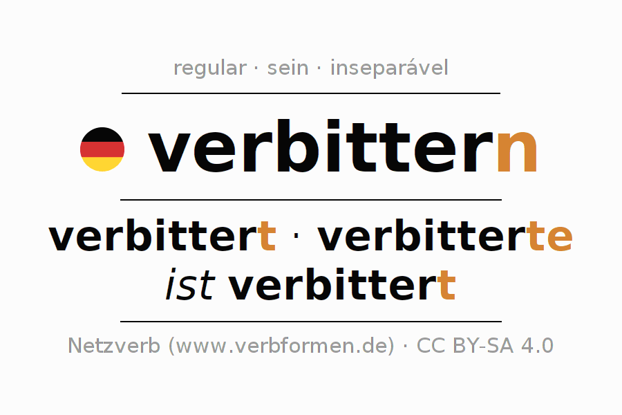A Tabela de verbo resume todas as formas verbais do verbo verbittern em uma só tabela.