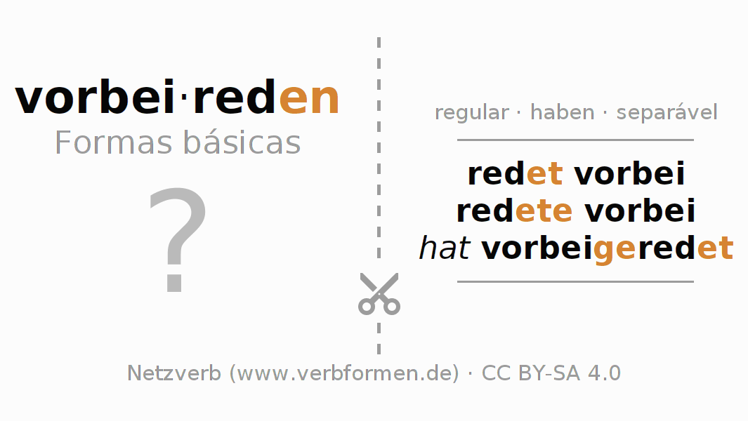 A Tabela de verbo resume todas as formas verbais do verbo vorbeireden em uma só tabela.