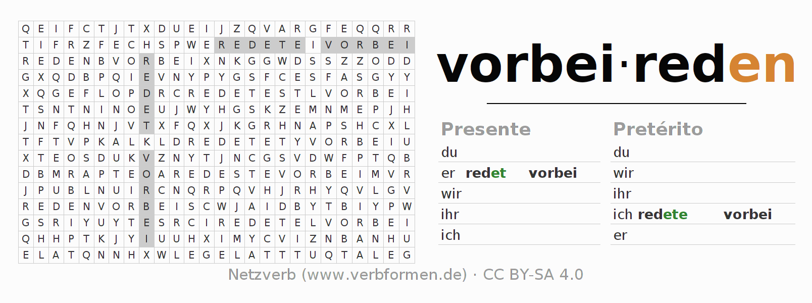 Caça-palavras para todas as formas do verbo vorbeireden