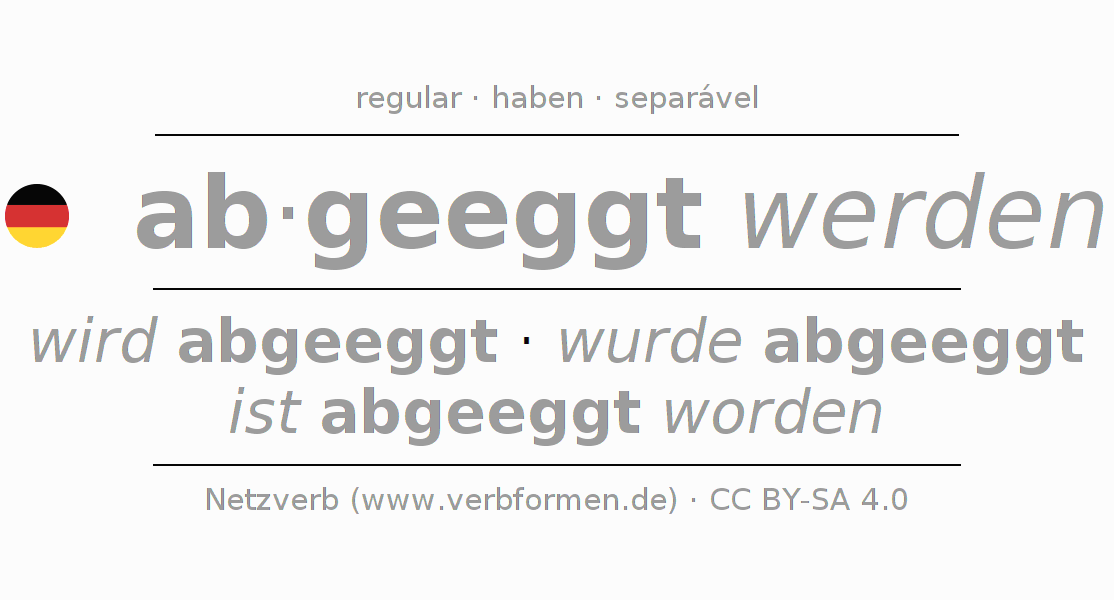 A Tabela de verbo resume todas as formas verbais do verbo abeggen em uma só tabela.