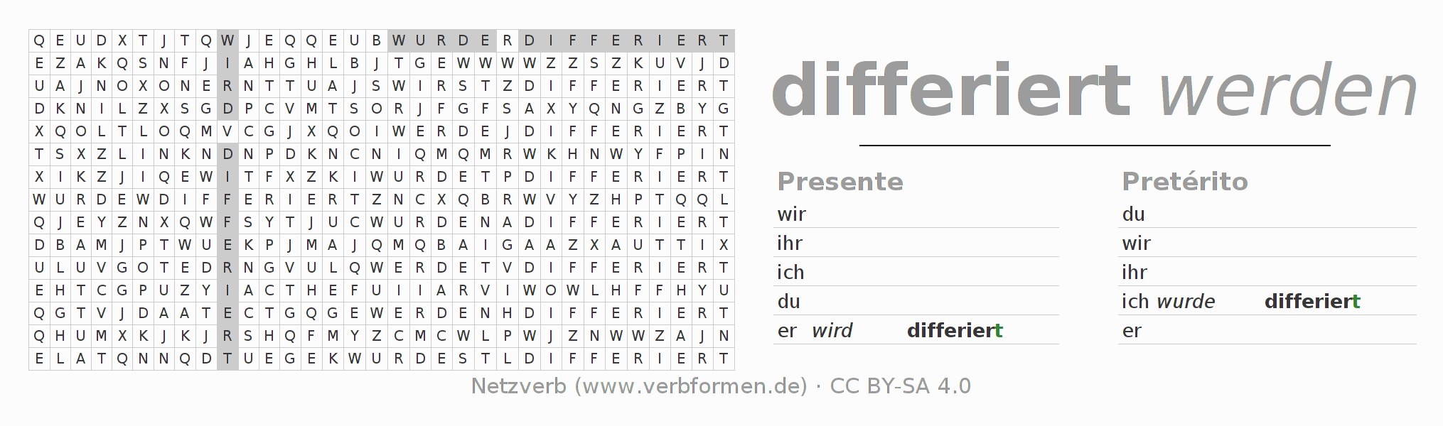Com o caça-palavras aprende-se de uma forma desafiadora a conjugação do verbo differieren.