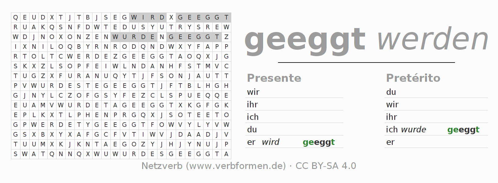 Caça-palavras para todas as formas do verbo eggen