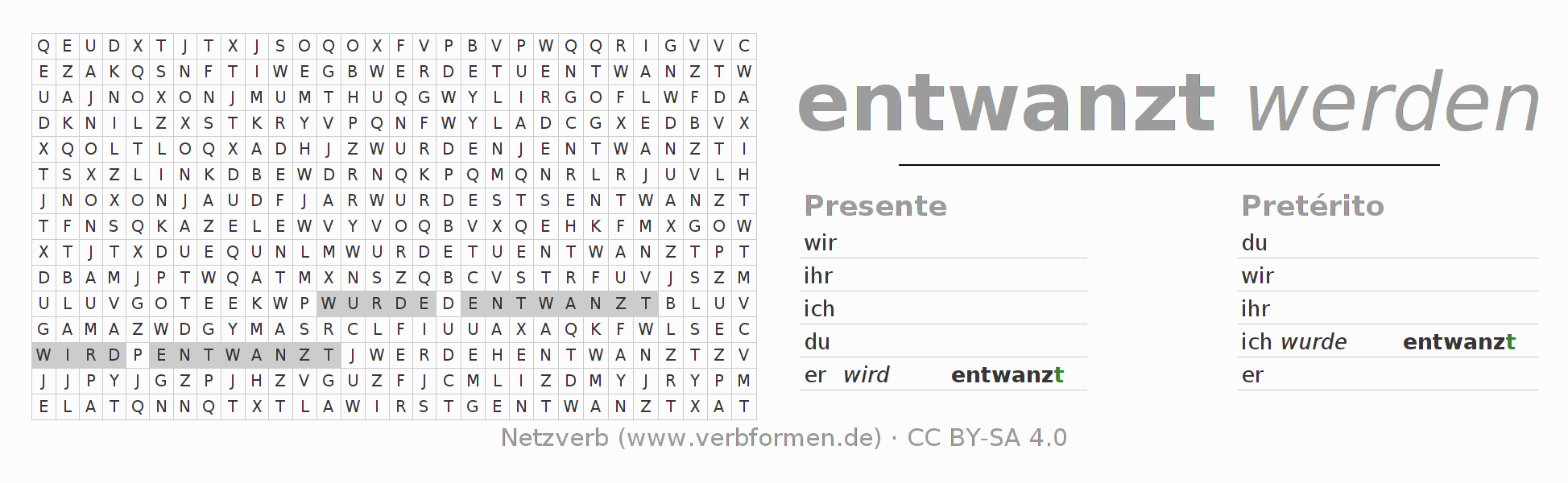 Com o caça-palavras aprende-se de uma forma desafiadora a conjugação do verbo entwanzen.