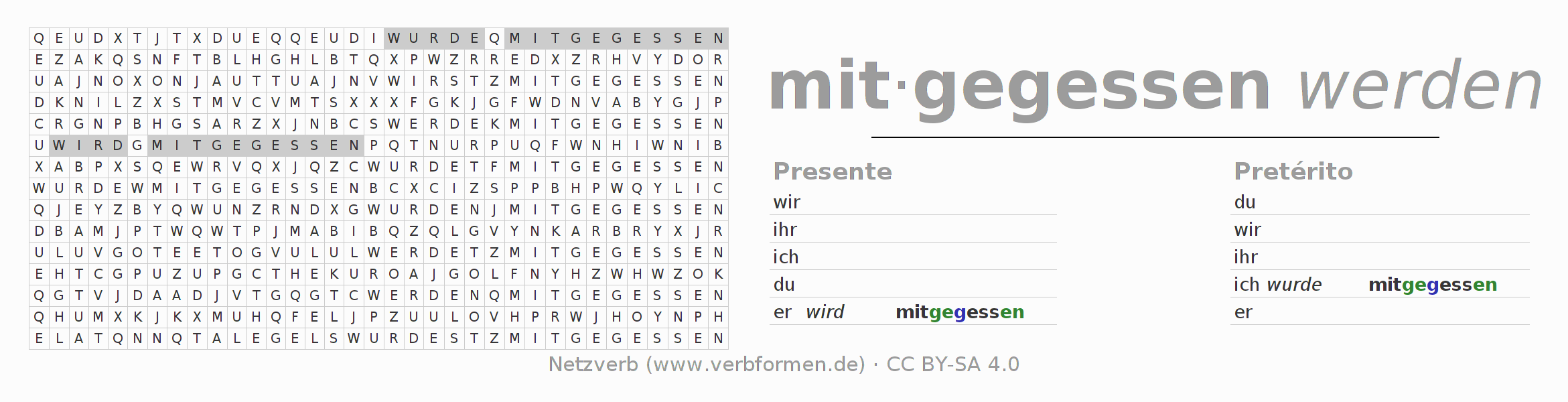 Caça-palavras para todas as formas do verbo mitessen