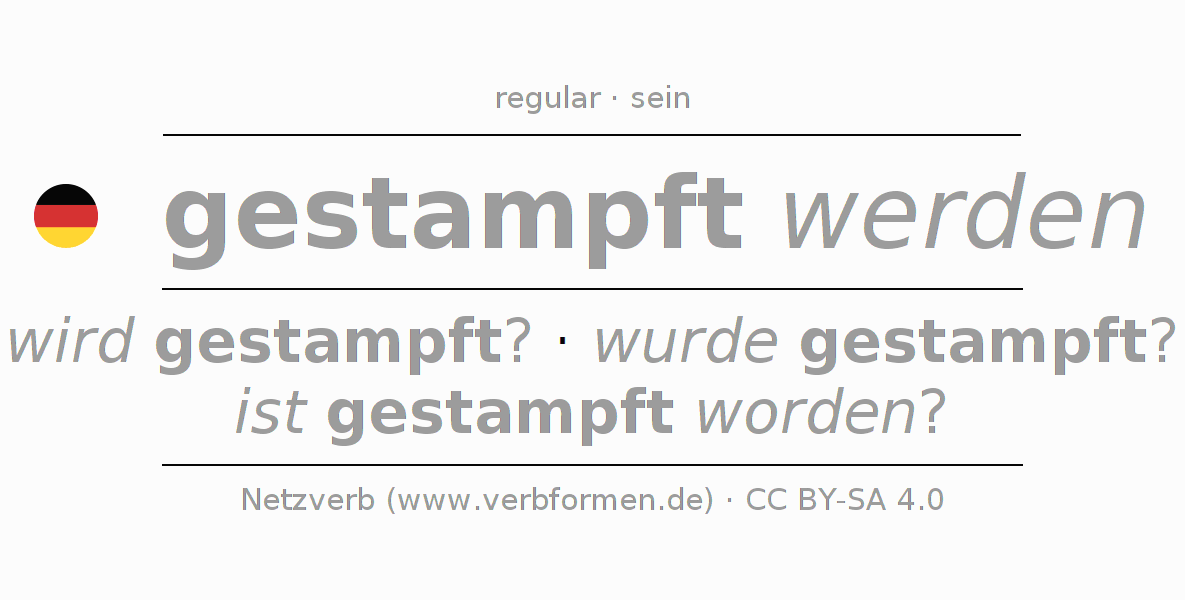 A Tabela de verbo resume todas as formas verbais do verbo stampfen em uma só tabela.