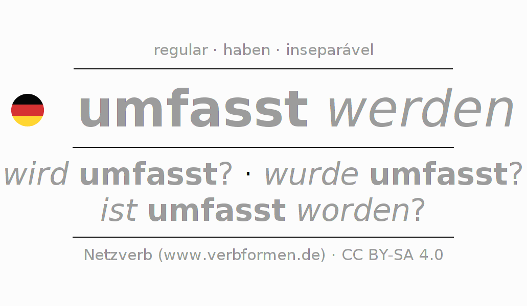 A Tabela de verbo resume todas as formas verbais do verbo umfassen em uma só tabela.