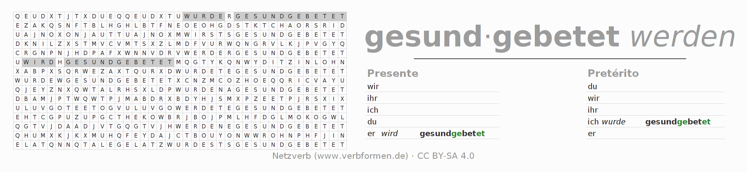Caça-palavras para todas as formas do verbo gesundbeten