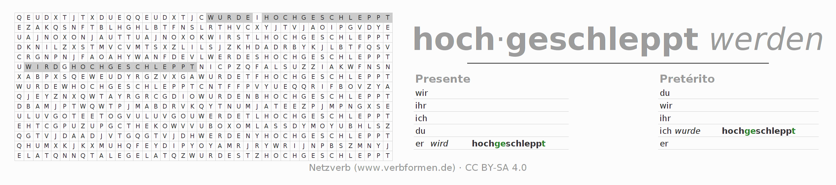 Caça-palavras para todas as formas do verbo hochschleppen