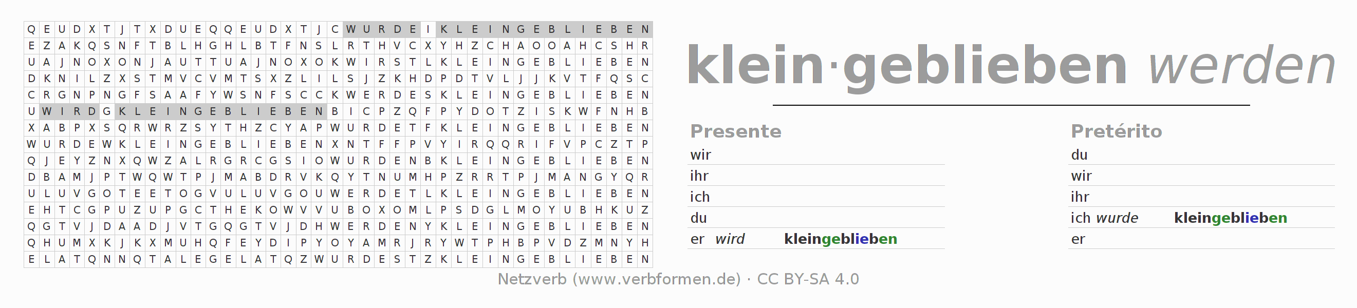 Caça-palavras para todas as formas do verbo kleinbleiben