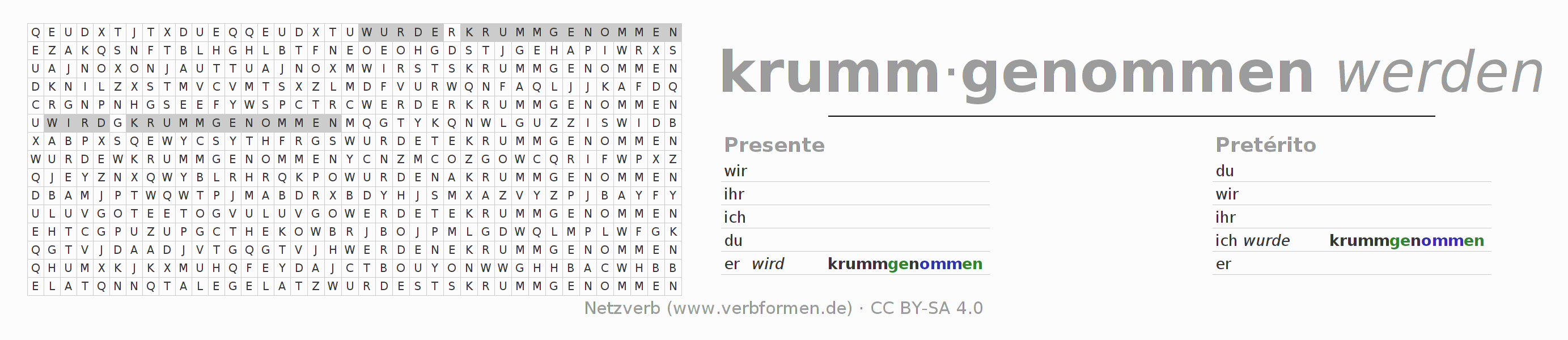 Planilhas para conjugação do verbo krummnehmen 〈Voz Passiva〉