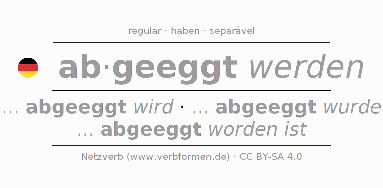 A Tabela de verbo resume todas as formas verbais do verbo abeggen em uma só tabela.