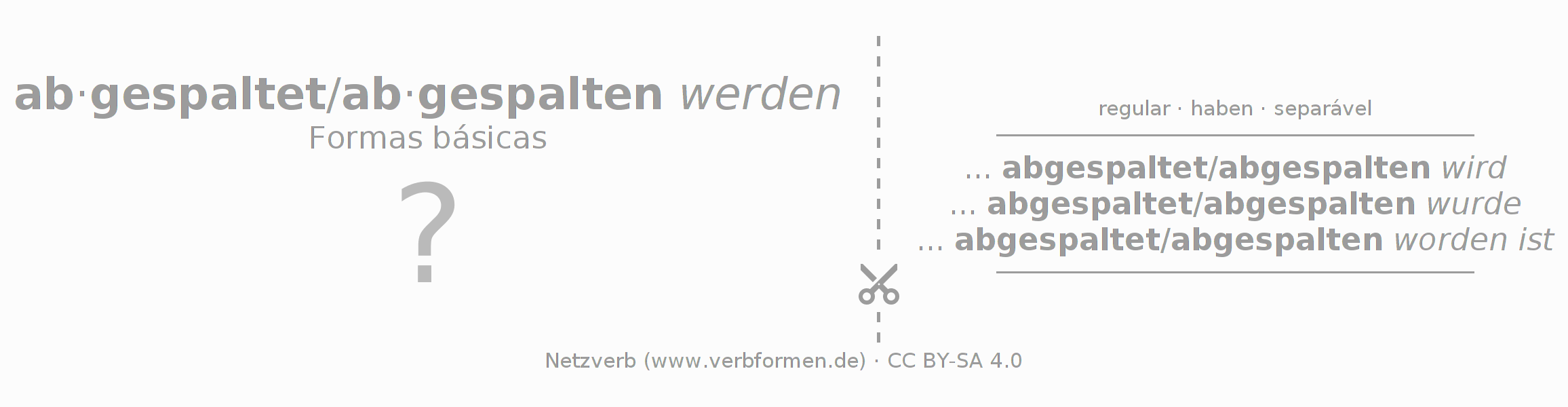 A Tabela de verbo resume todas as formas verbais do verbo abspalten em uma só tabela.