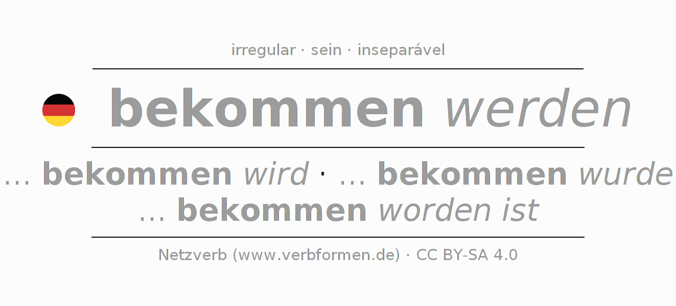 A Tabela de verbo resume todas as formas verbais do verbo bekommen em uma só tabela.