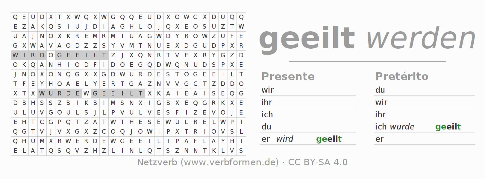 Caça-palavras para todas as formas do verbo eilen (hat)