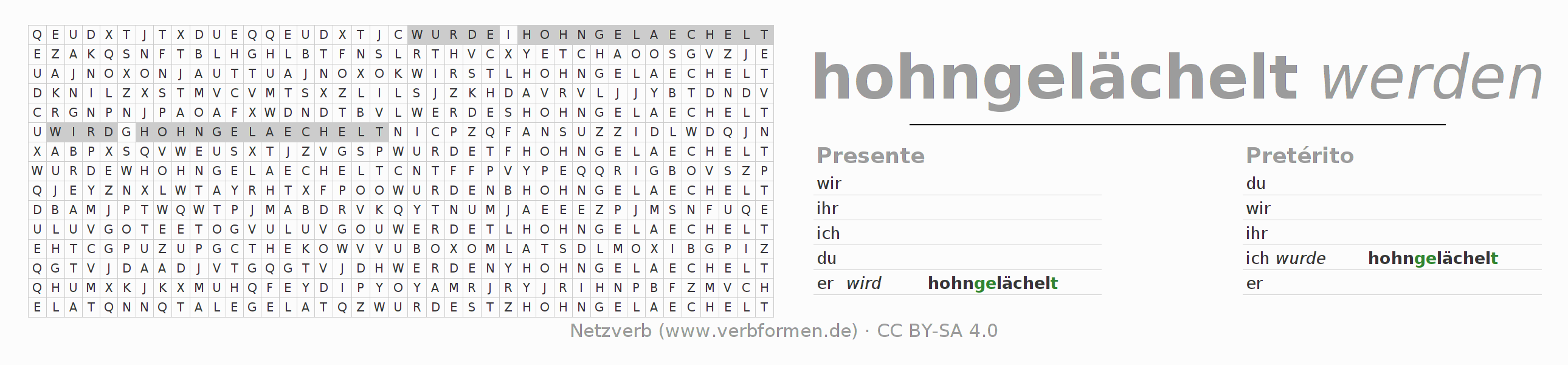 Caça-palavras para todas as formas do verbo hohnlächeln