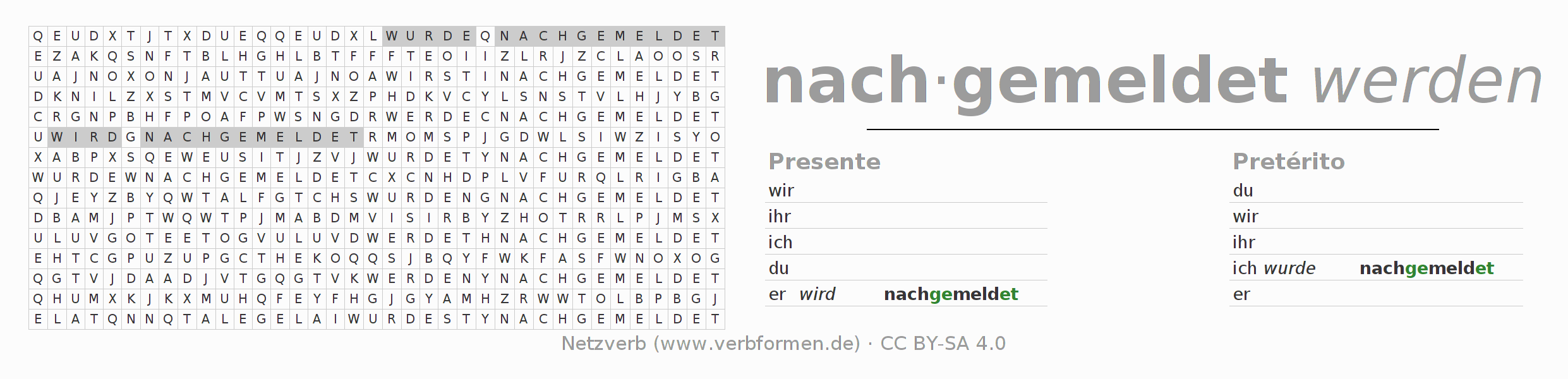 Com o caça-palavras aprende-se de uma forma desafiadora a conjugação do verbo nachmelden.
