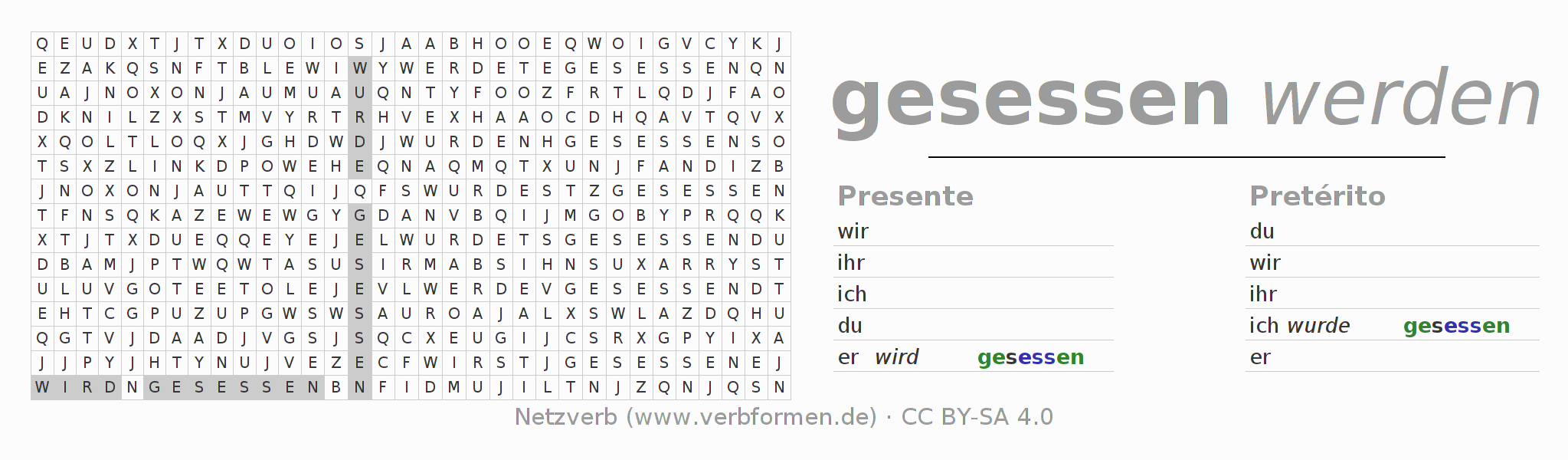 Caça-palavras para todas as formas do verbo sitzen (hat)