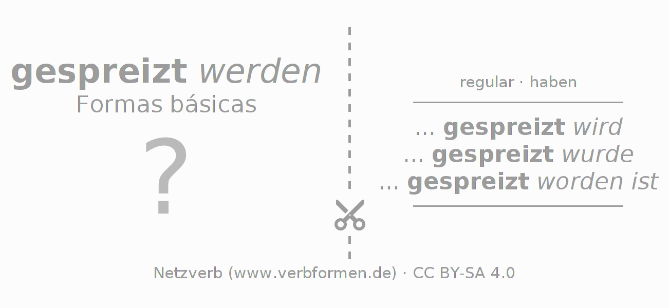 A Tabela de verbo resume todas as formas verbais do verbo spreizen em uma só tabela.