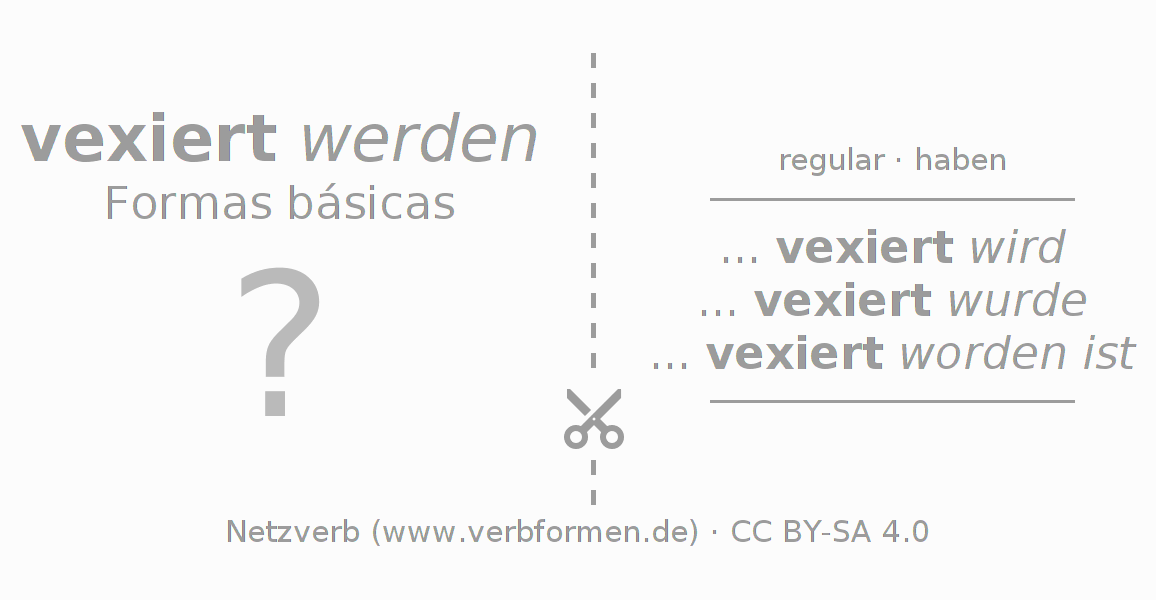 A Tabela de verbo resume todas as formas verbais do verbo vexieren em uma só tabela.