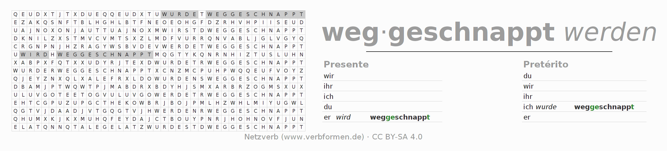 Caça-palavras para todas as formas do verbo wegschnappen