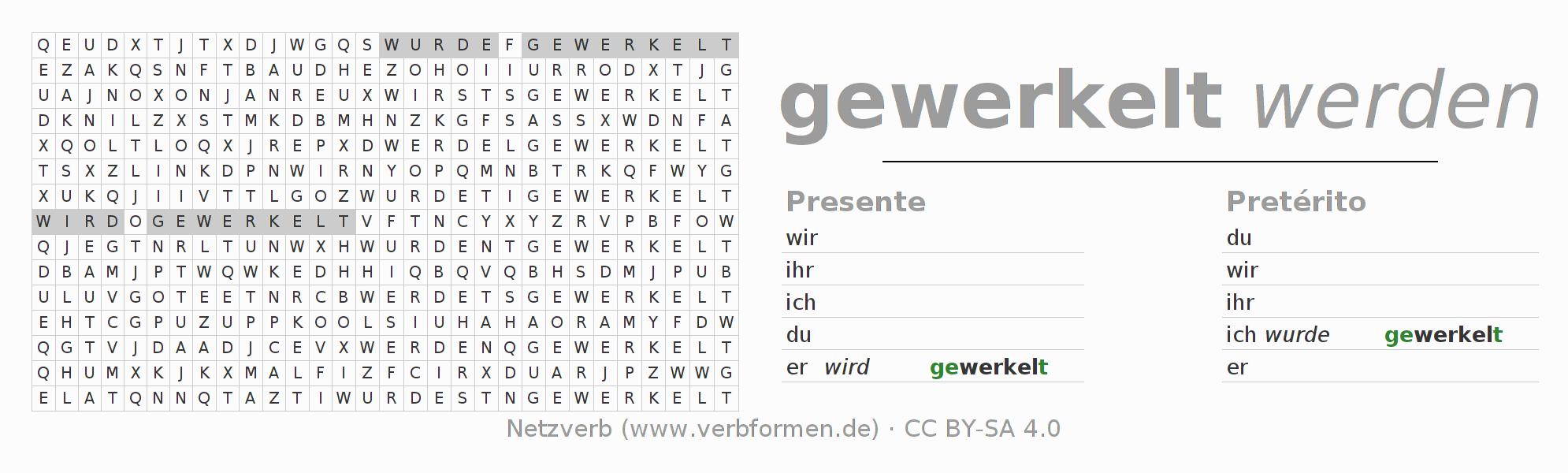 Com o caça-palavras aprende-se de uma forma desafiadora a conjugação do verbo werkeln.