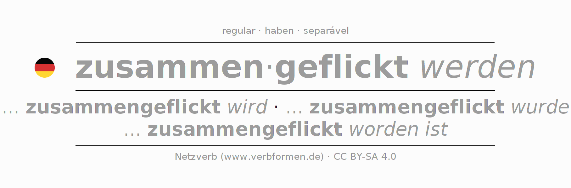 A Tabela de verbo resume todas as formas verbais do verbo zusammenflicken em uma só tabela.