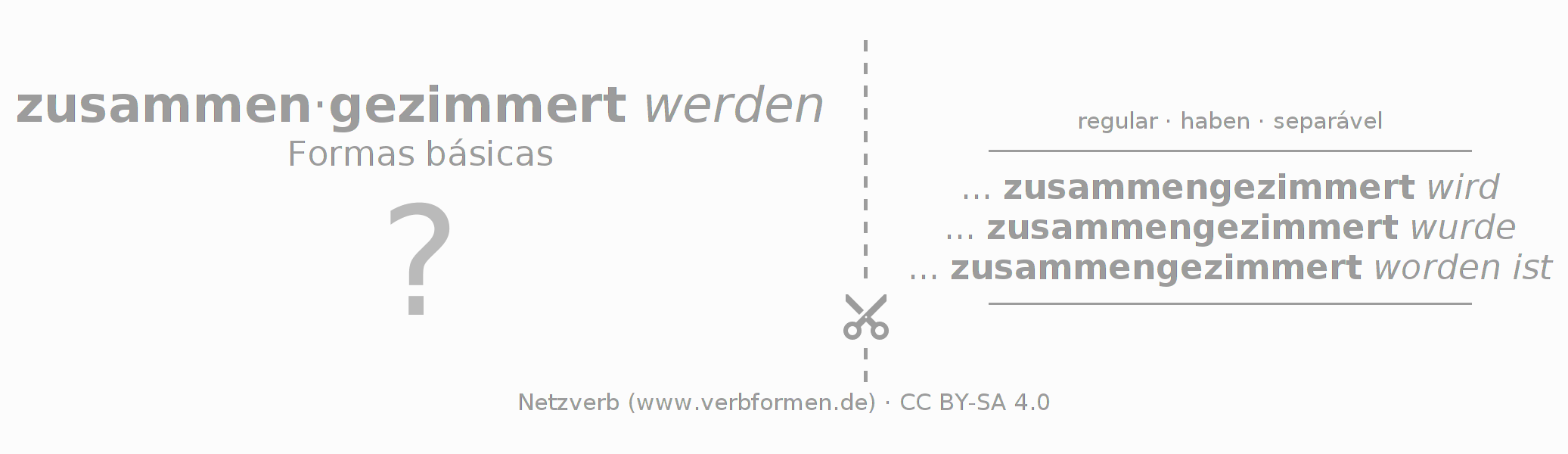 Tabela de conjugação para todas as formas verbais do verbo zusammenzimmern