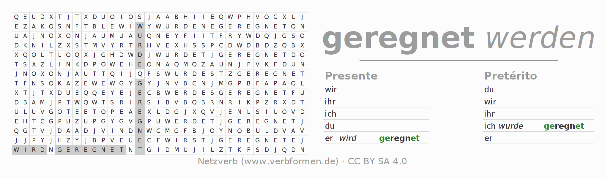 Caça-palavras para todas as formas do verbo regnen (hat)
