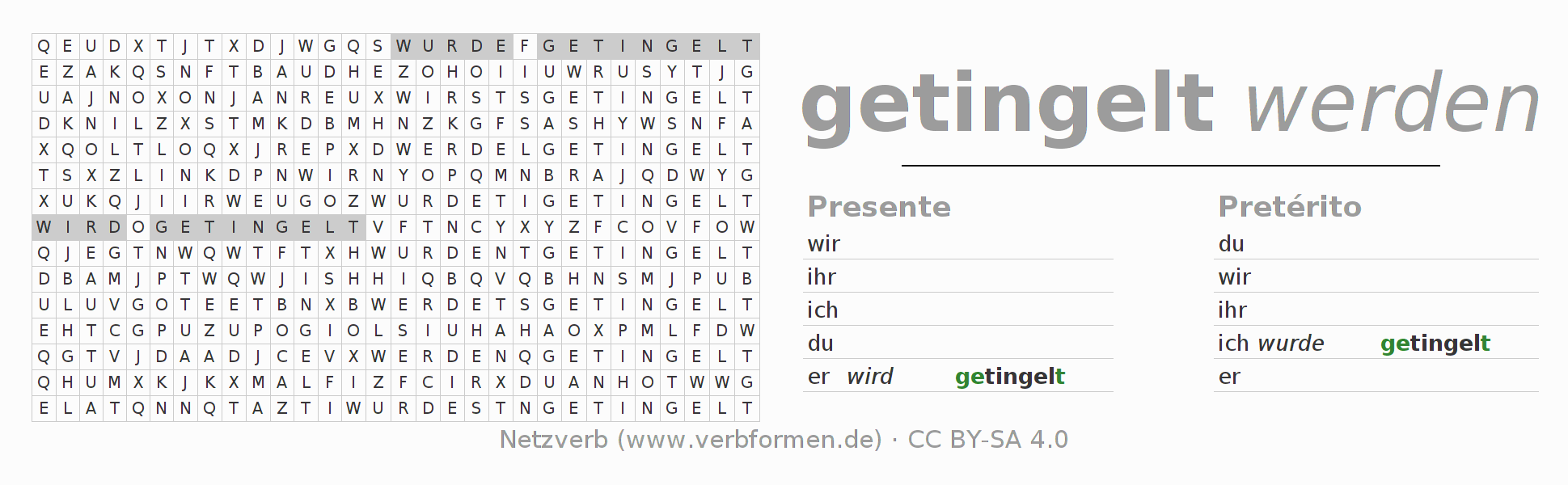 Caça-palavras para todas as formas do verbo tingeln (hat)
