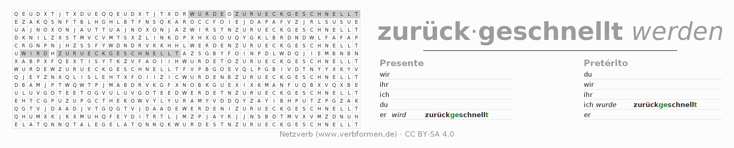 Caça-palavras para todas as formas do verbo zurückschnellen (ist)
