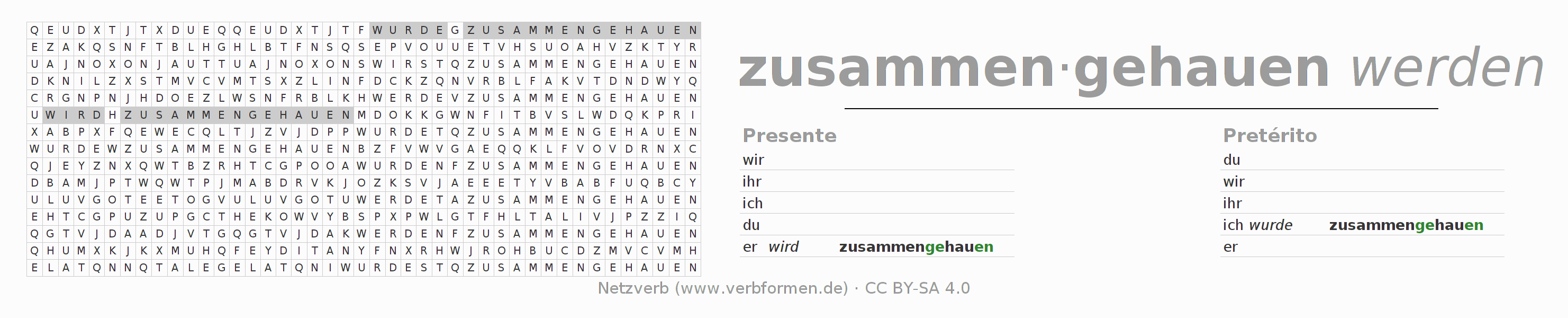 Caça-palavras para todas as formas do verbo zusammenhauen