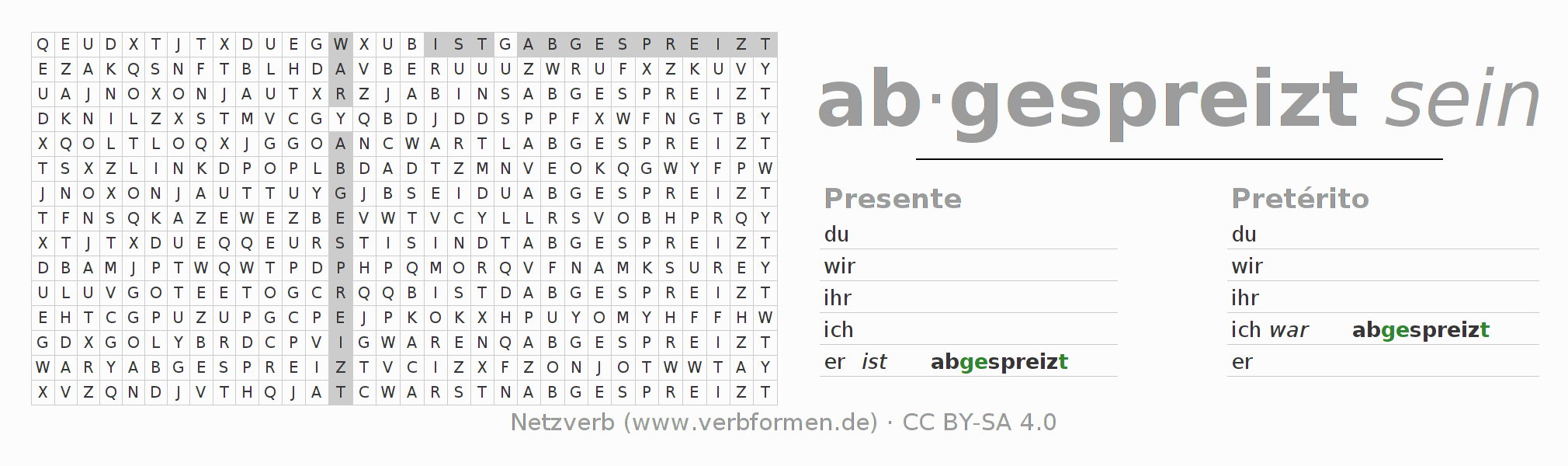 Com o caça-palavras aprende-se de uma forma desafiadora a conjugação do verbo abspreizen.